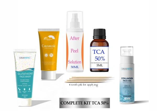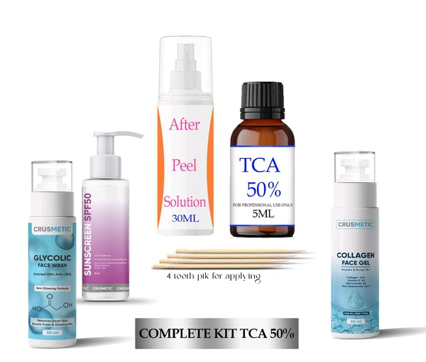 A Complete kit TCA CROSS 50% with Neutralizer & Glycolic With Kojic Acid Face Wash । Collagen Gel । Sunscreen SPF 50